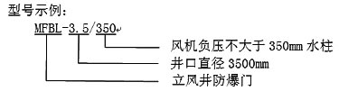 立風(fēng)井防爆門(mén)按風(fēng)機負壓分為不大于350mm水柱和不大于450mm水柱兩大類(lèi),按井口直徑有3個(gè)規格,共有6個(gè)型號規格,見(jiàn)下表: